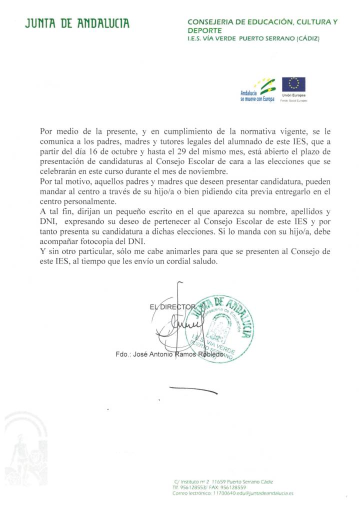 Inicio » Sin categoría » COMUNICACIÓN DEL PLAZO DE PRESENTACIÓN DE CANDIDATURAS PARA LA RENOVACIÓN DEL CONSEJO ESCOLAR
