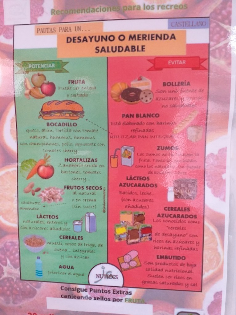 Dentro de la cafetería se promueve el consumo de productos saludables, como la fruta y productos bajos en azúcares, sal y grasas.